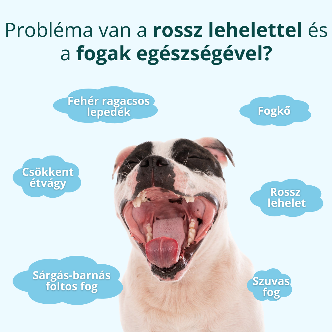 Segít megszűnteteni a rossz leheletet: Ha túl sok káros baktérium található a kutyád szájában, azok bomláskor illékony vegyületeket bocsátanak ki, amelyek kellemetlen szagot okoznak és rossz leheletet eredményeznek.