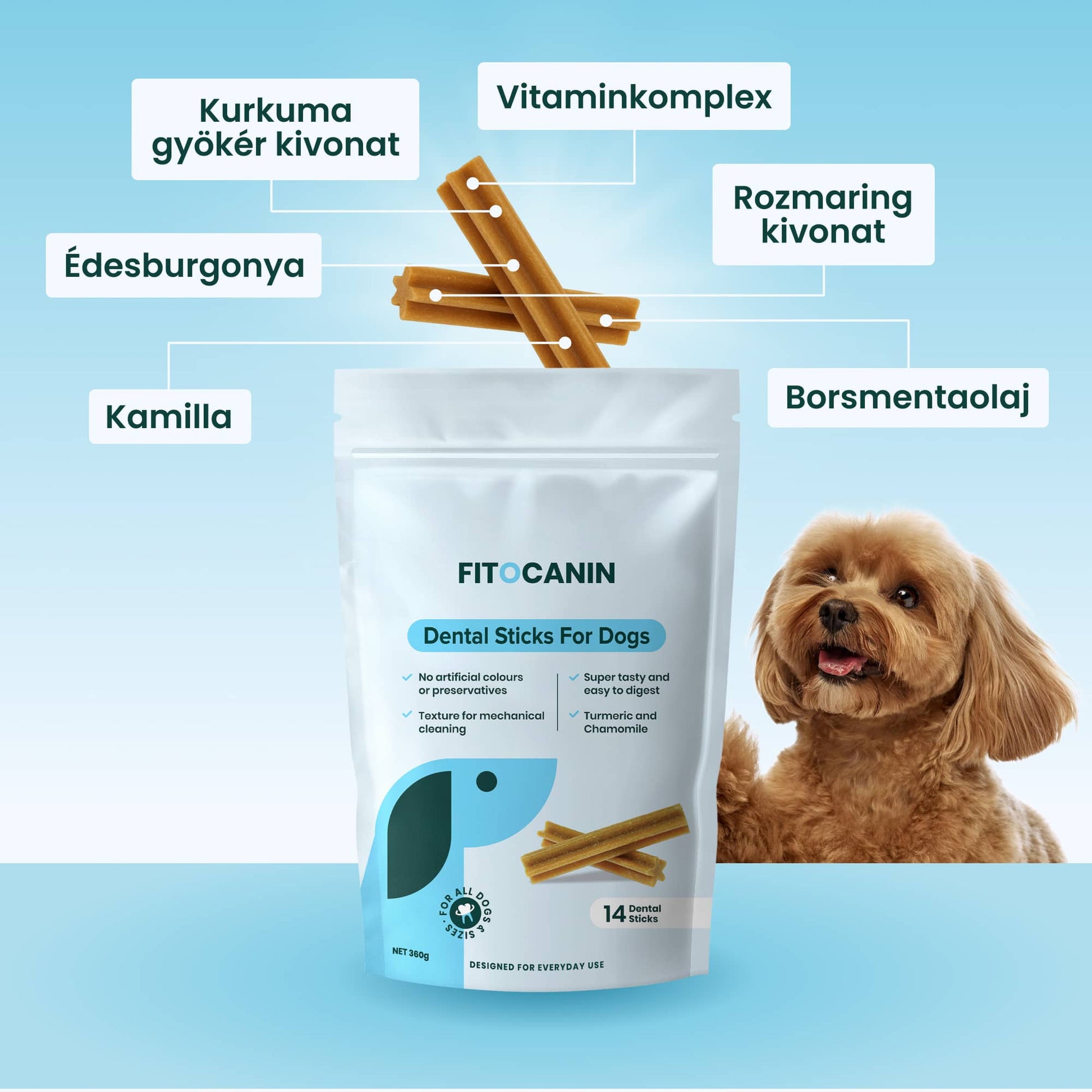 Rendszeres használat mellett csökkenthető a drága, altatással járó fogkőeltávolítások szükségessége. A minőségi Fitocanin rágórudak segíthetnek kitolni a kezelések közti időt – sőt, akár teljesen el is kerülhetők velük ezek a beavatkozások. A legjobb eredmény érdekében használd őket Dental Forte szájprobiotikummal együtt.